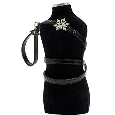 Trilly Tutti Brilli Yanng Leash with Swarovski Rivets And Fabric Snowflakes, Black Patent, 20 mm