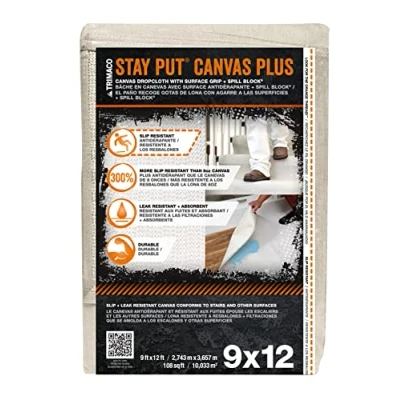 Trimaco 04321 Slip Resistant Dropcloth Stay Put Canvas Plus Drop Cloth, Beige, 9 feet x 12