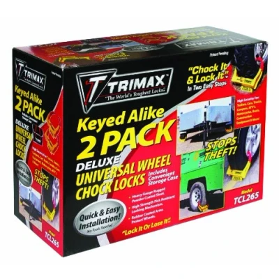 Trimax Deluxe Wheel Chock Lock Keyed Alike 2 Pack of Tcl65 Includes Carrying Case TCL265, Box Packaging