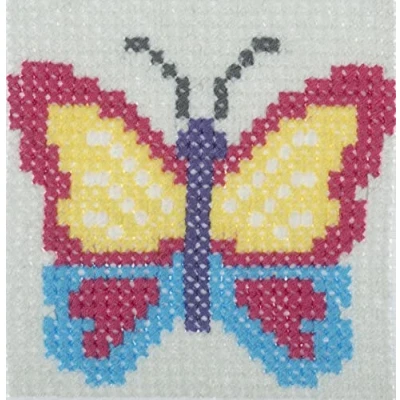 Trimits Children Learn to Cross Stitch Kits Counted Stitch, Canvas Needle Thread Instructions Included, 15 x 15cm (6 6in), Butterfly