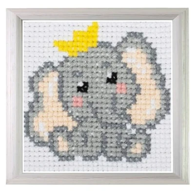 Trimits Children Learn to Cross Stitch Kits Counted Stitch, Canvas Needle Thread Instructions Included, 15 x 15cm (6 6in), Elephant