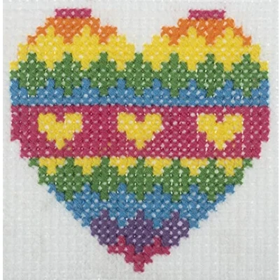 Trimits Children Learn to Cross Stitch Kits Counted Stitch, Canvas Needle Thread Instructions Included, 15 x 15cm (6 6in), Heart