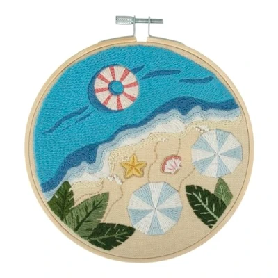 Trimits Embroidery Hoop Kits 15cm 6 Beginner Starter Set, Includes Bamboo Threads Cloth Needle Backing & Instructions, Beach