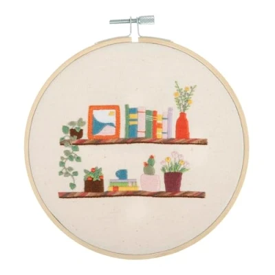 Trimits Embroidery Hoop Kits 15cm 6 Beginner Starter Set, Includes Bamboo Threads Cloth Needle Backing & Instructions, Floral Shelf