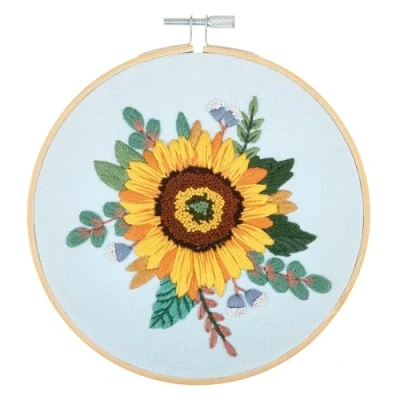 Trimits Embroidery Hoop Kits 15cm 6 Beginner Starter Set, Includes Bamboo Threads Cloth Needle Backing & Instructions, Sunflower