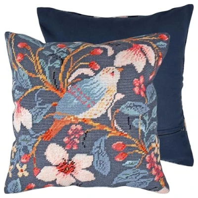 Trimits Half Stitch Cross Cushion Kit, Back Included, Pre Printed Canvas, Yarn and Needle Included 40 x 40cm (15.75 15.75in), Magnolia Bird