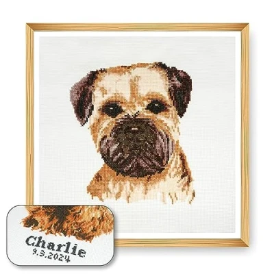 Trimits Large Cross Stitch Kits Counted Embroidery Needlework for Adults Beginners Kids, Christmas Gifts Wall Art (Frame Not Included), 11 Count, Border Terrier