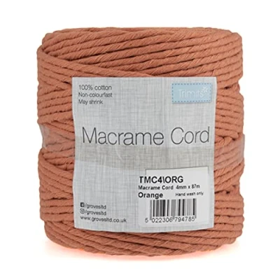 Trimits Natural Crafting Cotton Twisted Macramé Cord, Orange, 4mm x 87m