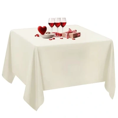 Trimming Shop Square Table Cloth, 54" x Premium Polyester Tablecloth Washable Spill Proof Dining Cover for Restaurant Cafe Wedding Birthday Party Decoration, Ivory, 1pc