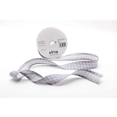 Trimz Bias Binding, Cotton, White and Grey, 25/5/5 mm