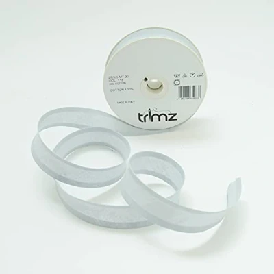 Amazon Marketplace 20m x 25/5/5mm 100% single fold cotton bias binding tape High quality Italian manufacturing Washable up to 60 deg C Ideal for edging a wide variety of fabrics & bunting Folded width is 25mm or 1 inch. Unfolded width is 35mm
