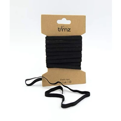 Trimz Braided Flat Elastic, Black, 6mm x 5m