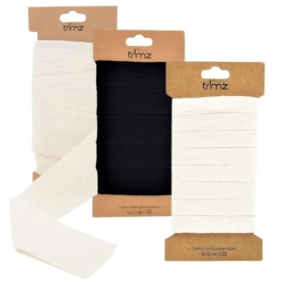 Hand‑Picked Selection: A creative mix of widths and shades curated for designers and makers. Balanced Variety: From narrow 15 mm detail work to wide 50 mm statement trims. Cotton‑Feel Herringbone Texture: Classic woven design adds depth and durability to every project. Ready for Inspiration: Convenient 5 m cards mean you can start crafting right away. Multi‑Purpose Use: Suitable for apparel finishing, décor embellishments, or stylish gift presentation.