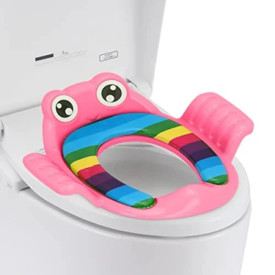 Trintion Potty Training Toilet Seat 38x35cm Kids Non Slip Splash Resistant Comfortable Trainer with Handles and Backrest Portable Toddler Pads for Round Oval Toilets (Pink)