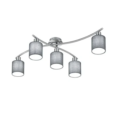AmazonVersatile Garda ceiling light with pivoting boom Matte nickel/Fabric umbrellas Grey Shade Diameter each 9.5 cm/Total length: 80 cm Suitable for 5 x E14 light bulbs up to max 25 watt Attractive design with special note