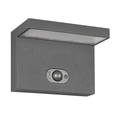 Blyde solar / mains hybrid outdoor wall light made of anthracite die-cast aluminium with IP65 protection rating. The luminaire can only work with solar energy, or only with mains or hybrid voltage. If the battery voltage is insufficient, the light will automatically switch to mains mode. The battery is only charged via the solar panel. Includes 5 watt energy saving LED with an average life of 50,000 hours and 700 lumens for optimal illumination. The light colour can be adjusted continuously, from warm white (2300 Kelvin) to neutral white (4000 Kelvin) The light only turns on at dusk/dark and has three different modes. Mode 1: 100% moving light, then continuous orientation light 10%. Mode 2: 100% light in motion, then off. Mode 3: Continuous orientation light 40% The upper light emitting diode indicates the mode. The lower light emitting diode indicates whether the light is currently running on battery or mains power. This product is an entourage product. The surrounding products are luminaires that can be disassembled for separate verification of the contained light source(s). This product contains a light source of energy efficiency class F
