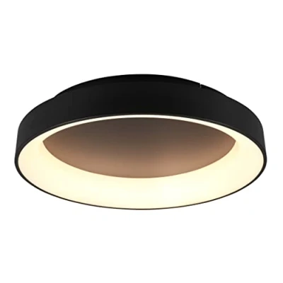 Girona LED ceiling light in matt black metal and an acrylic white shade. The light has a diameter of 60 cm Includes powerful 48 watt LED (permanently installed) with an average life of 30,000 hours and a maximum of 5,600 lumens for optimal illumination Brightness can be freely adjusted via the included remote control, and the light colour can be freely adjusted from 2700 Kelvin (warm white) to 6000 Kelvin (cold white) Wattage: 48.0 watts This product is a surrounding product. Ambient products are lights that can be disassembled for separate checking of the included light source(s)