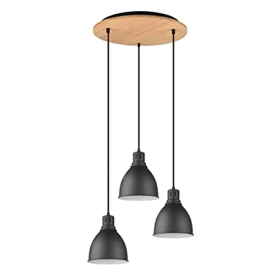 Trio Leuchten Henley 310730332 Pendant Light Metal Black Matte Wood Natural Bulbs 3X E14