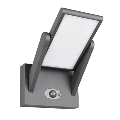 Malawi LED solar hybrid outdoor wall light in anthracite die-cast aluminium with protection class IP65. The luminaire can only work with solar energy, or only with mains or hybrid voltage. If the battery voltage is insufficient, the light will automatically switch to mains mode. The battery is only charged via the solar panel. Includes 5 watt energy saving LED with an average life of 50,000 hours and 700 lumens for optimal illumination. The light colour can be adjusted continuously, from warm white (2300 Kelvin) to neutral white (4000 Kelvin) The light only turns on at dusk/dark and has three different modes. Mode 1: 100% moving light, then continuous orientation light 10%. Mode 2: 100% light in motion, then off. Mode 3: Continuous orientation light 40% The upper light emitting diode indicates the mode. The lower light emitting diode indicates whether the light is currently running on battery or mains power. This product is an entourage product. The surrounding products are luminaires that can be disassembled for separate verification of the contained light source(s). This product contains a light source of energy efficiency class E