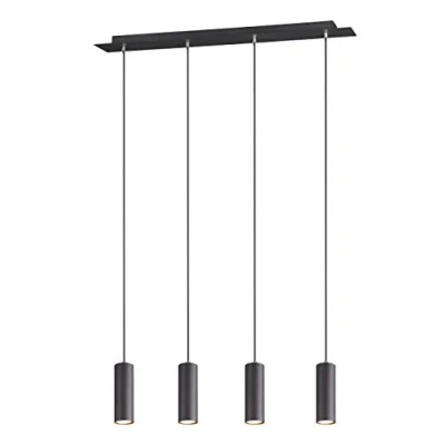 Marley 4-Bulb Pendant Light Metal Matt Black Light bulb not included. Recommended light bulbs: 4 x GU10 max. 35 watts The light has a width of 75 cm and a total height of 150 cm Bulb not included
