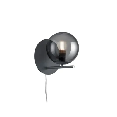 Pure wall light in metal anthracite with a smoky glass Light bulbs not included. Recommended bulb 1 x E14 max. 28 watts Flex connect – the light can be operated with the enclosed cable via a socket or clamped directly to a terminal strip