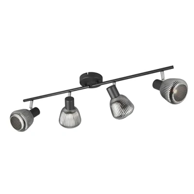 Tarifa 4 Flame Spot Bar in Matt Black Metal with Spray Chrome Glass Shade Light fixture without bulb. Recommended bulb 4x E14 max. 10 watts The spotlights can be angled and tilted, so the luminaire can be used in different ways No bulb included