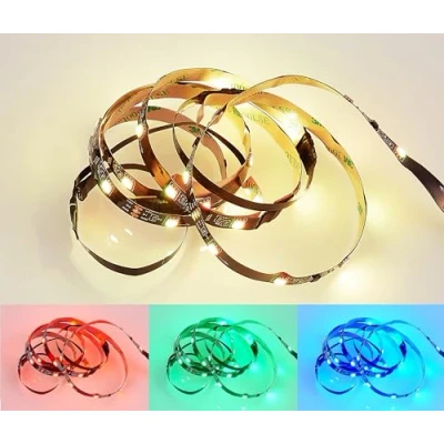 Black plastic LED strip display with a total length of up to 300 cm. The strip consists of two elements of 100 cm, two elements of 50 cm and three connectors. Connection is via USB Inklusive energiesparende 2.5 Watt RGB LED. Über die beiliegende Fernbedienung kann die Helligkeit stufenlos angepasst sowie die Lichtfarbe eingestellt werden Dynamic Light - RGB LEDs can be switched independently, together or in groups. In addition to multi-coloured or single-color mood lighting, pre-programmed dynamic scenarios offer fascinating lighting effects Sound Control - Using a built-in microphone, the RGB LEDs react to ambient noise in real time and visualize rhythmic and vivid lighting effects while listening to music, watching movies or playing This product is a surrounding product. The surrounding products are luminaires that can be disassembled for separate verification of the contained light source(s). This product contains a light source of energy efficiency class G