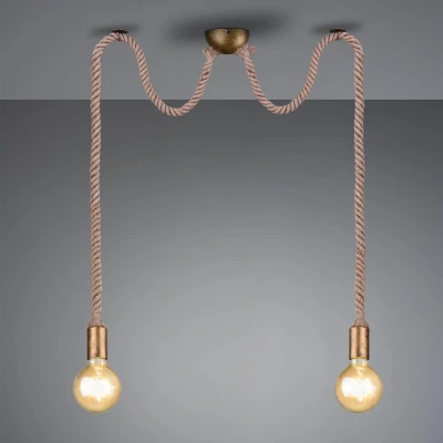 AmazonRope pendant light 2-bulb in antique brass metal with a cable wrapped in linen Light bulb not included. Recommended light bulbs: 2 x E27 max. 60 watts The pendulum has a height of 150 cm, the width can be individually attached Bulb not included