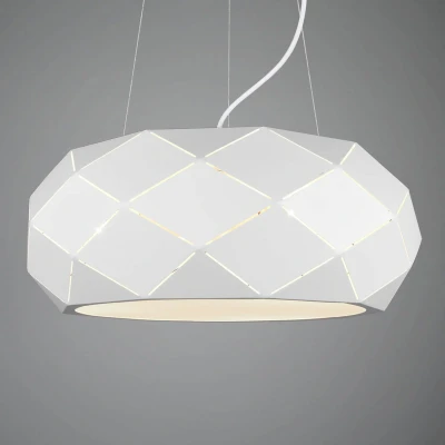 Zandor pendant luminaire in brilliant white Thanks to its extraordinary appearance, the Zandor pendant luminaire is the ideal choice when it comes to lighting issues in your home living, dining or sleeping area. The geometric design of the lampshade is particularly eye-catching, as the clear lines are both elegant and playful. The pendant lamp is attached to the ceiling by means of a suspension. The lampshade, whose design radiates pure retro feeling, is made of white plastic. It encases the lighting element, which emits a pleasant warm white light into the room, creating a cosy lighting atmosphere.