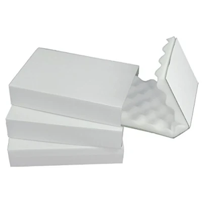 Internally lined with 20mm thick foam, white cardboard exterior using 150 WK/T board Ready made for use - no need to pre assemble Size: 11 x 7 x 2" (279 x 181 x 51 mm) Item package quantity: 1