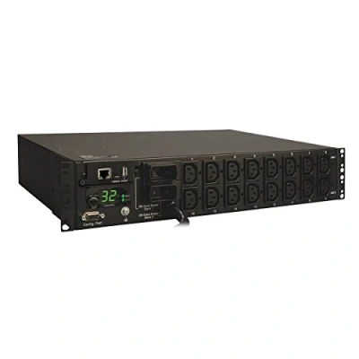 Switched 32A 7.3kW 230V PDU, 2U horizontal rackmount Reports voltage, frequency & loading information via ethernet interface Visual current meter, rack installation hardware included Blue 230V IEC-309 32A (2P+E) input cable 16 C13 switched outlets with cord retention brackets