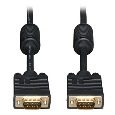10.67 m black SVGA / VGA cable for monitors and displays (HD15 male to HD15 male molded connectors) Gold plated connectors and gold plated copper contacts ensure excellent conductivity. Superior molded cables with foil-shielding for maximum EMI/RFI protection Constructed from mini-coax (RGB) and paired video wire construction for superior signal quality. Supports resolutions up to 2048 x 1536