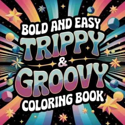 Trippy & Groovy Coloring Book Bold and Easy: 50 Pages for Adults Teens Featuring Psychedelic Things, Stress Relief Designs
