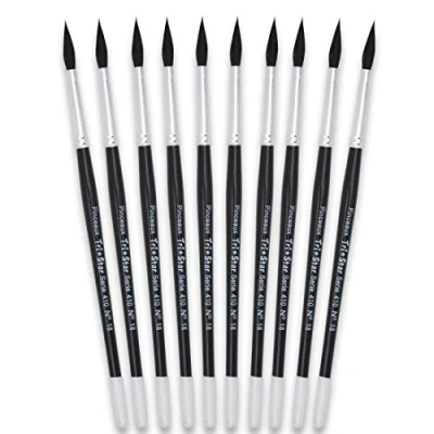 410 Series:Extra fine mixed bristles small grey and pony. The bristles are flexible and durable. Pack of 10 No.18 Brushes The small grey and pony mix tip is characterized by good water retention. This makes the 410 series excellent brushes for watercolor, gouache and washes, but also ink, nail art, painting on figurines, miniatures.... The extra-fine quality of the blending of small grey and pony hair offers a soft, thin, flexible and elastic tip. The black and white varnished wooden handle and the rustproof anodized aluminium ferrule allow easy maintenance and good resistance of the brush over time. The range includes round brushes from size 2 to size 20.