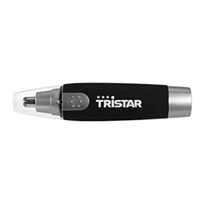 The TRISTAR TR-2587 nose, ear, and eyebrow hair trimmer is a practical and safe tool for eliminating unwanted hair. It operates wirelessly with a 60-minute battery life and features a rotary blade system that ensures no risk of cuts. The trimmer comes with a cleaning brush and an instruction manual.