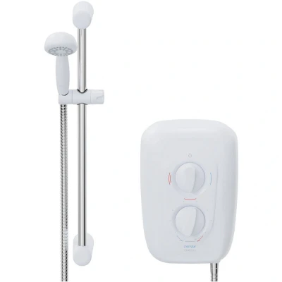 General description This Triton Avena White 9.5kw Electric Shower combines high-quality design with practicality. Its sleek curves and designer look complement any bathroom decor, making it a stylish addition to your space. Technical specifications Model Number: WDB10976 Power: 9.5 kW Water inlet: Reversible for left and right-hand connectivity Cable entry points: Left and right-hand side Shower kit: White/Chrome with single spray pattern shower head Controls: Separate power and temperature controls