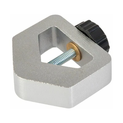 General description Carving tool jig designed for use with the Whetstone Sharpener TWSS10, providing accurate sharpening for carving tools and other short tools. It features a clamp that securely holds narrow and butt chisels, ensuring precision during sharpening. The internal 'v' shape of the jig automatically centers the tool, making it easier to achieve optimal results. Additionally, it is capable of clamping power tool carving blades.