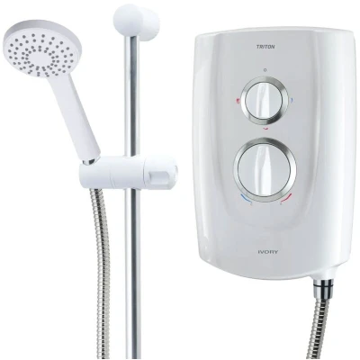 General description The Triton Ivory 5 Easy Fit Electric Shower combines a clean design with functionality, making it a stylish addition to any bathroom. It is designed for hassle-free replacement, featuring multiple cable and water entry points, and a generous footprint that covers previous screw holes. The shower includes a riser rail kit with a height-adjustable top fixing bracket to assist in concealing old rail screw holes. Technical specifications Power: 9.5KW Dimensions: 325mm x 211mm x 112mm Water inlet: 180° fully reversible swivel for left or right connections Shower hose: 1.25m stainless steel chrome Shower head: Rub clean single spray pattern Guarantee: 2 years Energy rating: A IPX4 approved Compatibility and accessories Compatible with various Triton models for replacement, including: Triton T80Z Fast Fit Triton T10+ Fast Fit Triton T70 GSI Electric Shower Triton T80 GSI Electric Shower Triton CHERISH Electric Shower Triton ECLIPSE Electric Shower Triton SERRES Electric