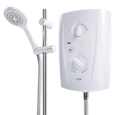 Triton T80 Pro-fit electric shower - 7.5kW. The household favourite Triton T80 range really has gone pro with the T80 Pro-Fit! Making it even easier to install and replace an existing shower, Pro-Fit is the ultimate replacement shower for your bathroom. Furthermore, Triton Dura-Flow™ technology within the shower itself and the 5 spray pattern shower head, help reduce limescale build up for a longer lasting shower. Longer lasting shower - Uses Triton Dura-Flow™ technology to help reduce limescale Easily replaces most electric showers - 8 cable and water entry points apiece (left and right hand side) Includes fully adjustable Pro-Fit riser rail kit - Height adjustable top and bottom fixing brackets to enable fitting to any previous holes Also includes optional clip-fit bottle tray, 5 spray rub clean shower head and 1.5m anti-twist hose Installer approved ease of installation 2 year parts and labour guarantee @3peGQHh13GA@ Genuine brand new Triton product, covered by a Triton manufacturer's guarantee.