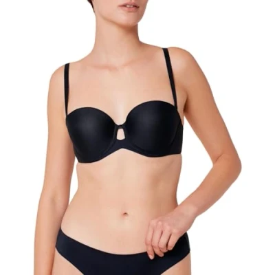 AmazonStrapless, padded bra Teasing centre keyhole Round cups with stay-in-place gripping tape Added support even for bigger busts Soft, detachable, multifunctional straps