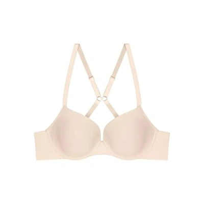 Smooth, simple and comfortable, silky microfibre feels soft against skin Moulded cups made from recycled PU J-hook fastening, crossback bra Invisible seams for a flawless look under clothes