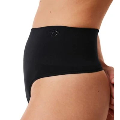 Minimal-coverage string brief made of smooth, soft knit fabric Knit bandeau waistband with medium belly support Embossed brand logo Soft trimmings and flat seams at leg openings prevent discomfort and digging-in