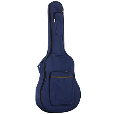 Sizing; This bag fits all makes and models of full size acoustic and classical guitars. Length: 105cm, Width: 41cm, Depth: 11cm Pockets; Two zipped pouches on the outside to help keep your accessories safe. Carry Handles; The guitar case has two soft adjustable shoulder straps for backpack style carry. It also comes with a side grip handle. Protective; Padded guitar bag to protect your guitar from knocks and scrapes. Material; Blue, showerproof nylon, with dual zip opening.