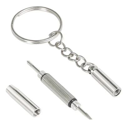 Precision Engineering: Specially designed for eyeglass and sunglass repair, this screwdriver features a finely crafted tip that fits snugly into tiny screws, ensuring precision and control with every turn. High-Quality Materials: Made from durable, rust-resistant stainless steel, this screwdriver is built for long-term use, maintaining its sharpness and integrity even after multiple repairs. Compact and Portable: Lightweight and small enough to fit in your pocket, purse, or glasses case, making it convenient to carry with you wherever you go for on-the-spot adjustments or repairs. Versatile Use: Perfect not only for eyeglasses and sunglasses but also for adjusting and repairing other delicate items such as watches, cameras, small electronics, and even mobile phones. Dimensions (without keyring): 59mm Long x 5mm Diameter