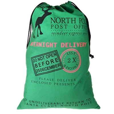 TRIXES Santa Sack Green, Christmas Reindeer, Post Office, Draw String Present Bag Sack, Xmas for Kids, Festive Gift, Presents