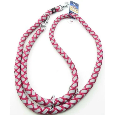 Cavo Reflect adjustable leash for dogs in Fushia color. Size L-XL. 2 meters ø18mm. Braided band in the round. Reflective. 3 possible settings.