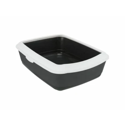 Trixie 40184 Classic Cat Litter Tray with Rim, 37 x 15 47 cm, Dark Grey/White
