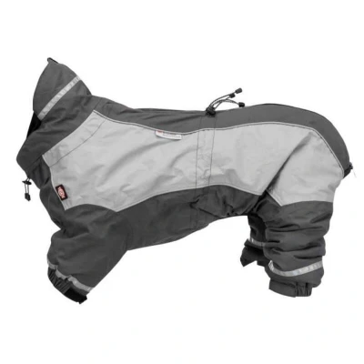 This winter dog suit protects against moisture and cold. Ideal for short-haired dogs, it is waterproof, windproof, and breathable. Lined with soft plush, it offers optimal comfort with waterproof seams and a zipper.