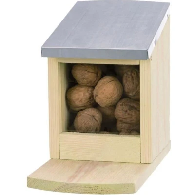 This pine food basket is specially designed for squirrels. Its dimensions are 12 × 18 × 24 cm. It is suitable for small animals. Its main color is brown.
