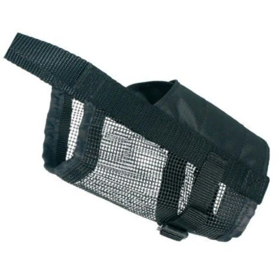 Comes with net insert for better heat exchange, prevents circulation problems, fully adjustable neck strap with buckle, fully adjustable snout circumference Polyester, for short-term use (e.g. vets, train rides, etc.) Muzzles prevent biting, no problems with panting, drinking and feeding treats.